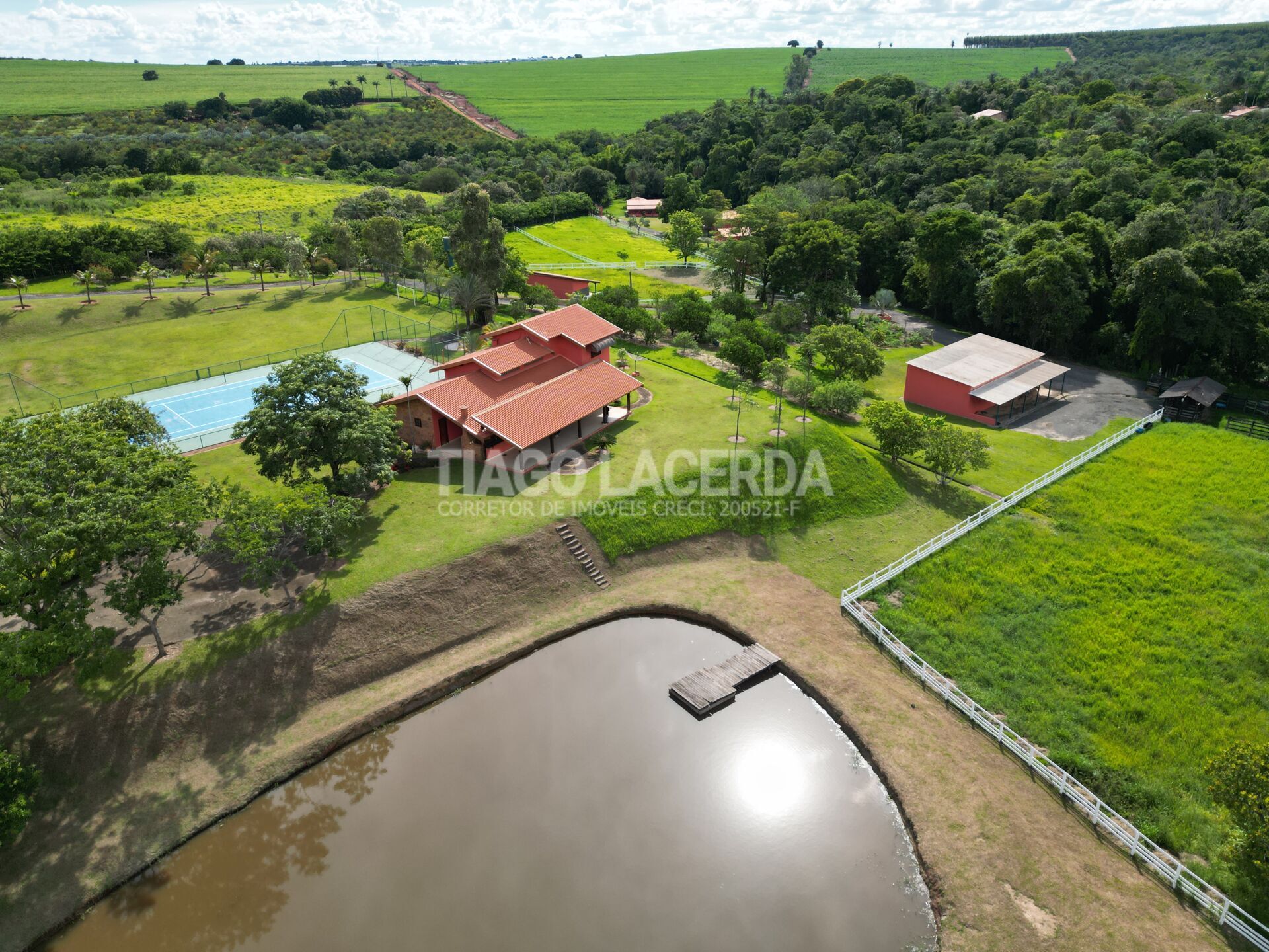 Três tanques, totalizando cerca de 5.000 m² de lâmina d’água, agregando beleza, lazer e potencial hídrico à propriedade